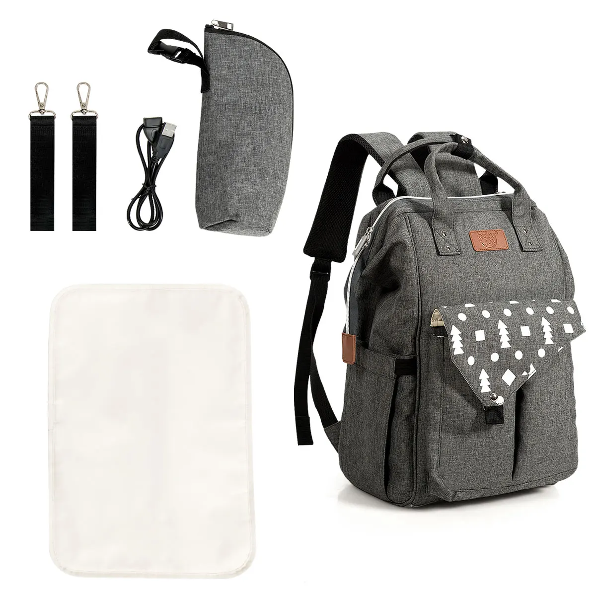 Package Includes: 10??1 x Diaper Bag Backpack1 x Changing Pad1 x Insulated Bottle Bag1 x USB Cable2 X Stroller Straps